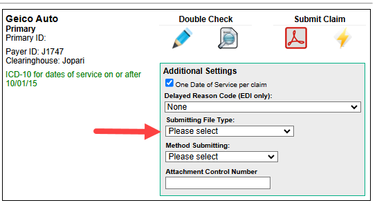 - Under the Additional Settings, select the Submitting File Type you want to submit through the Jopari portal.